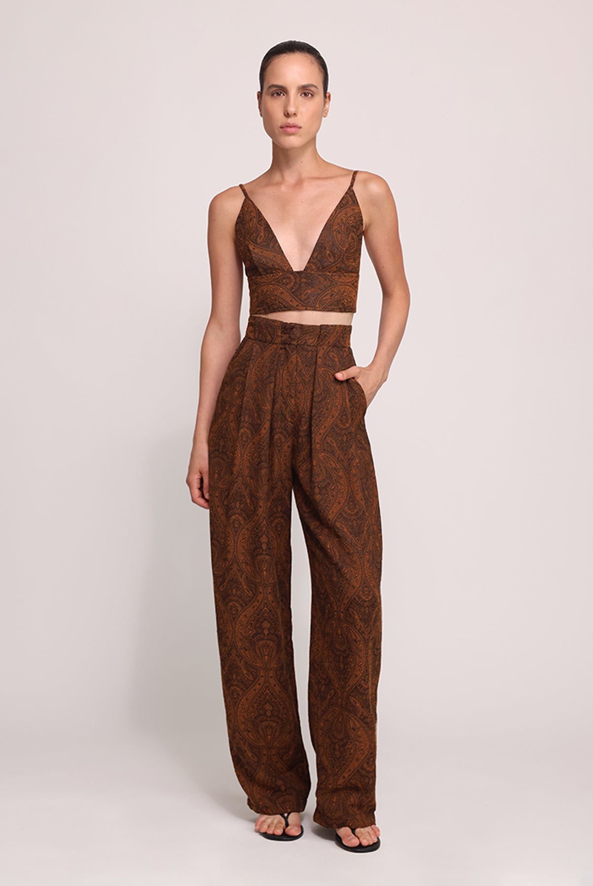 - Casual jacquard paisley high waist pants by Sabina Musayev.