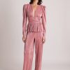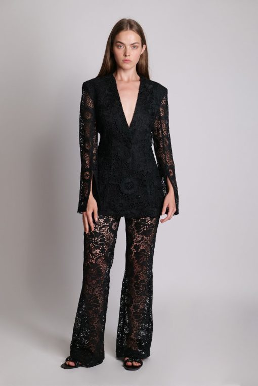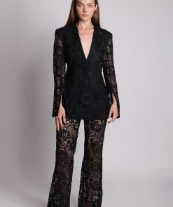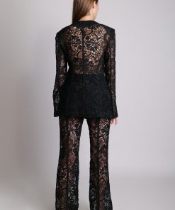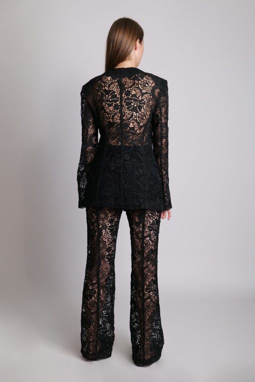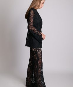 Lace High-waist flared trousers with shorts woven lining. Zip fly and matching covered button fastening.