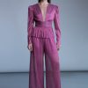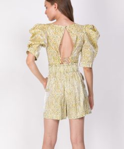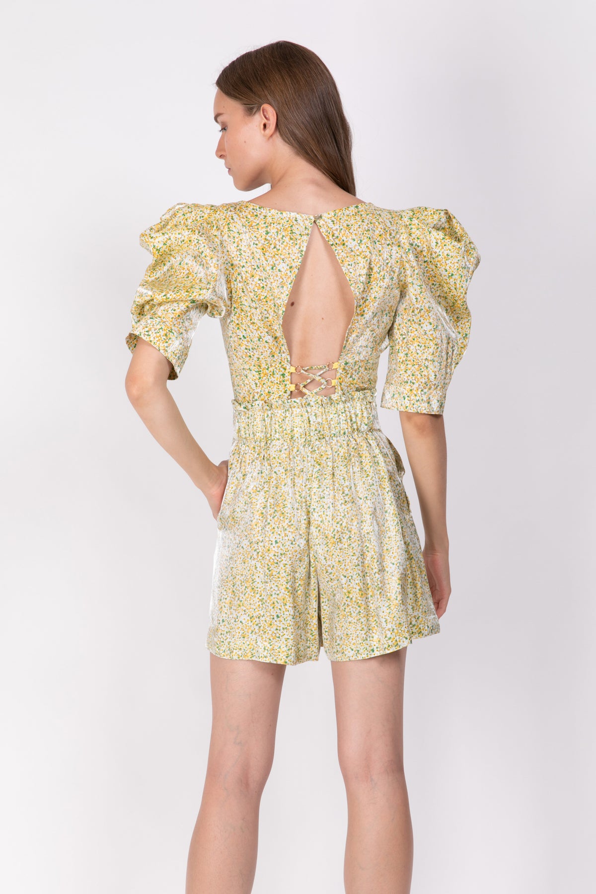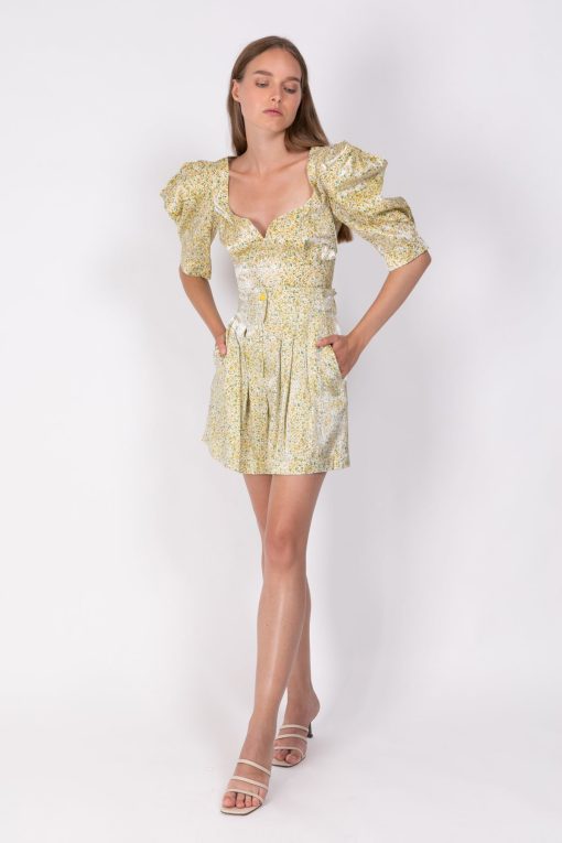 Shiny printed viscose high waisted short pants with front pleats and side pockets.