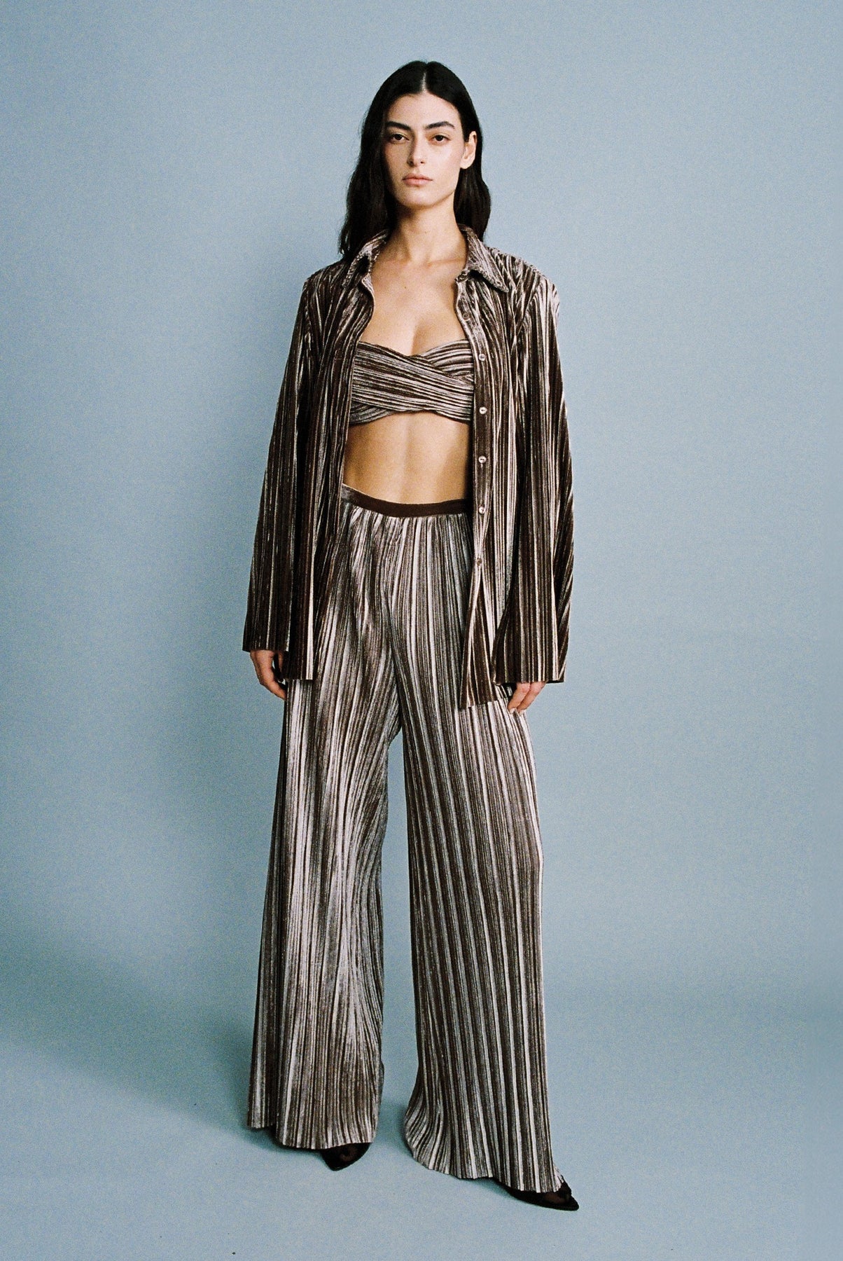 Pleated velvet bra with a twisted front detail.