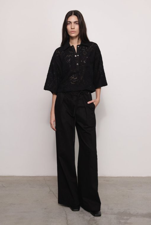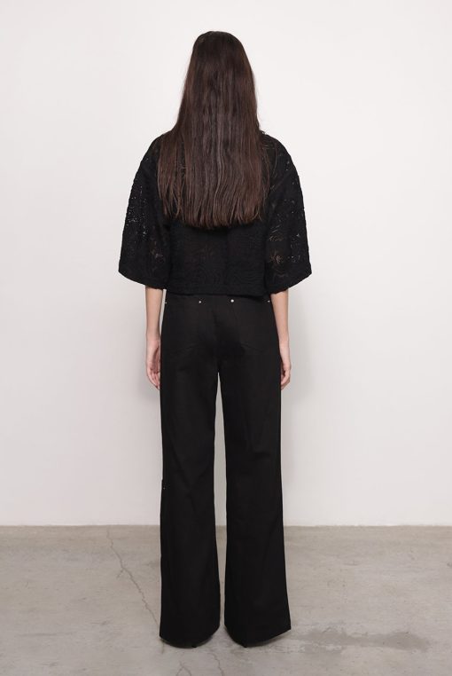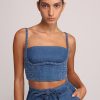 - Evening brushed denim with ribbon crop top by Sabina Musayev.