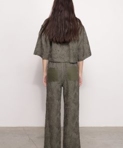 - Evening brushed denim with ribbon crop top by Sabina Musayev.
