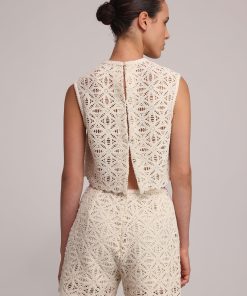 - Evening beaded crochet sleeveless crop top by Sabina Musayev.