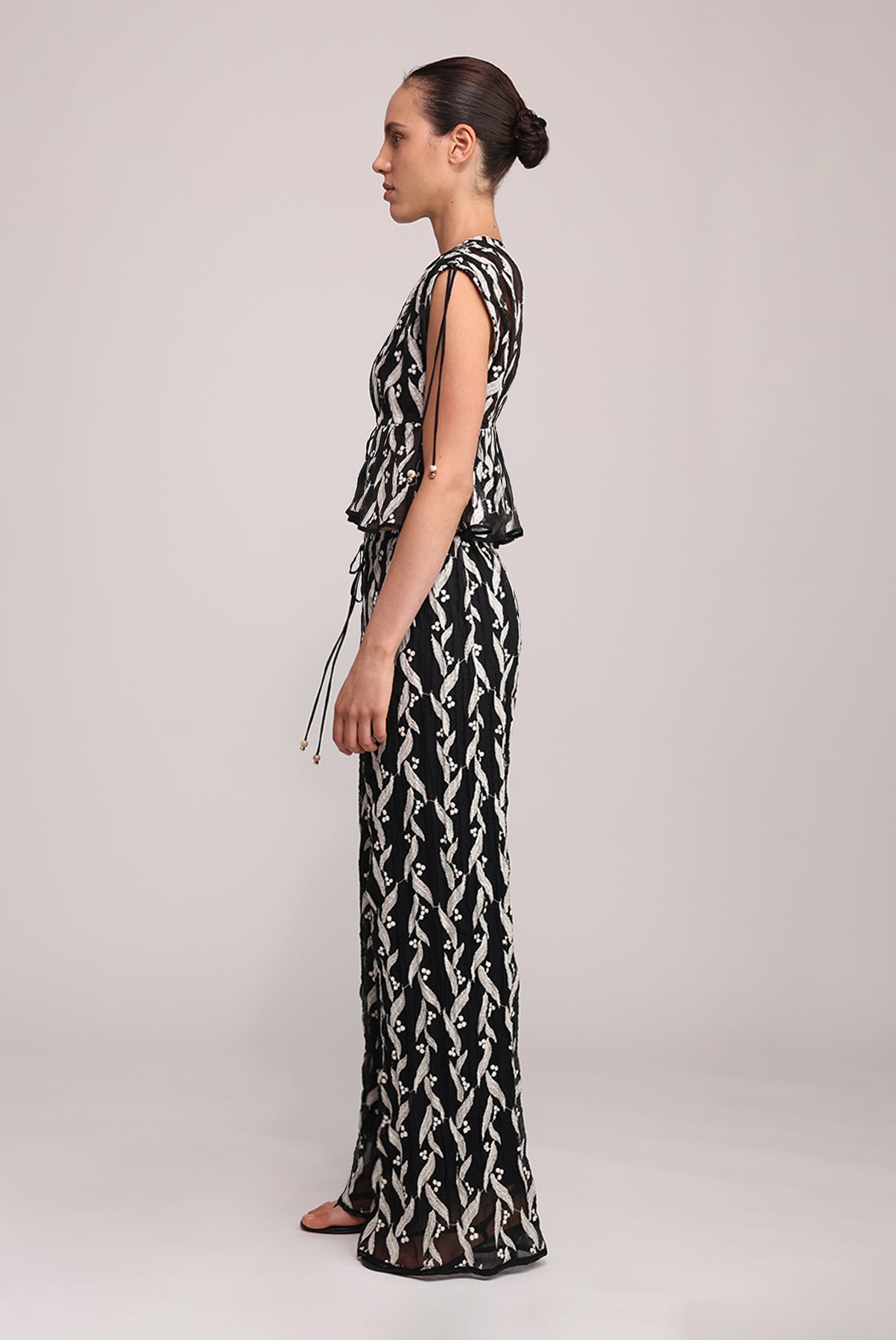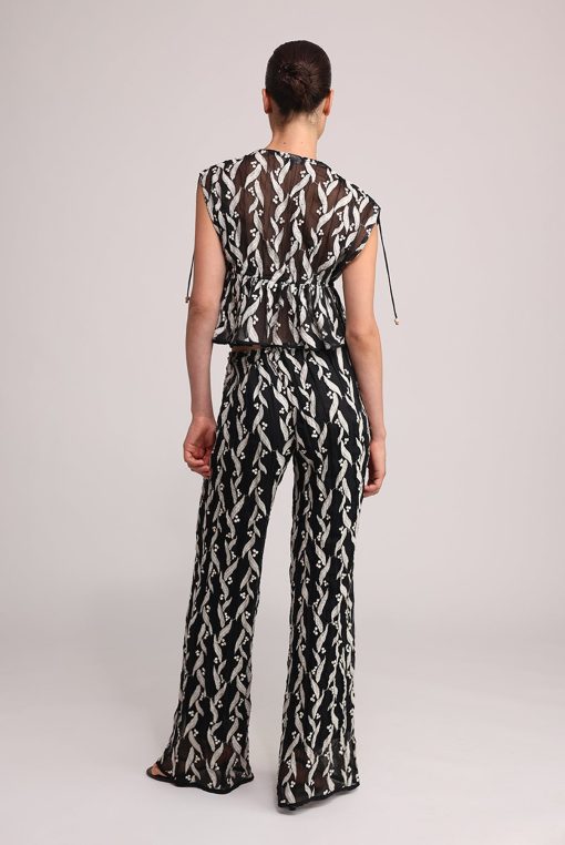 - Casual pleated chiffon with emb pants Casual pleated.