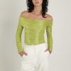 Ray lurex crop top with wrap gathered detail on the front, and long sleeves.