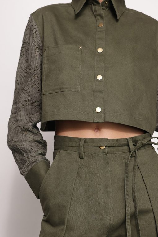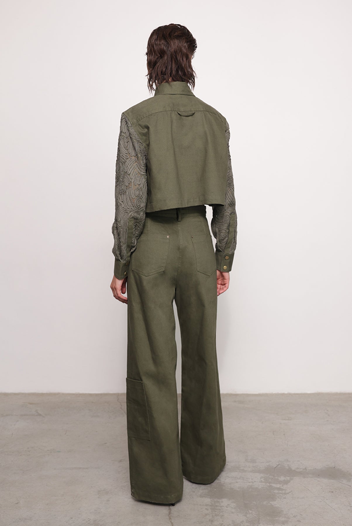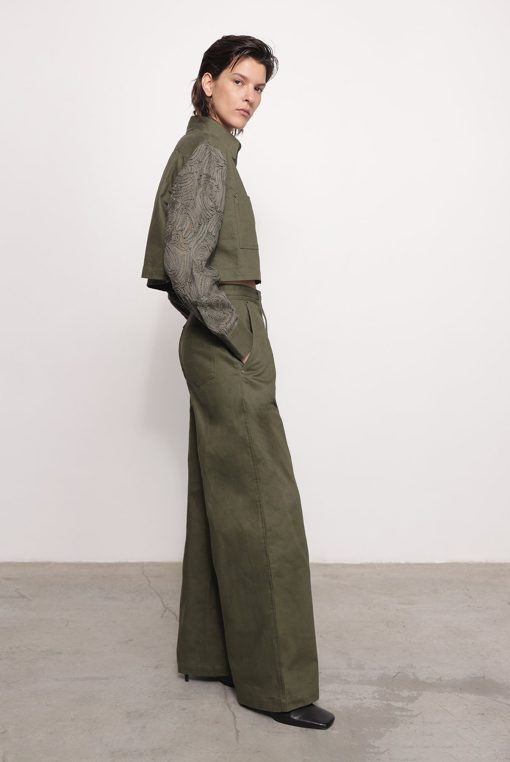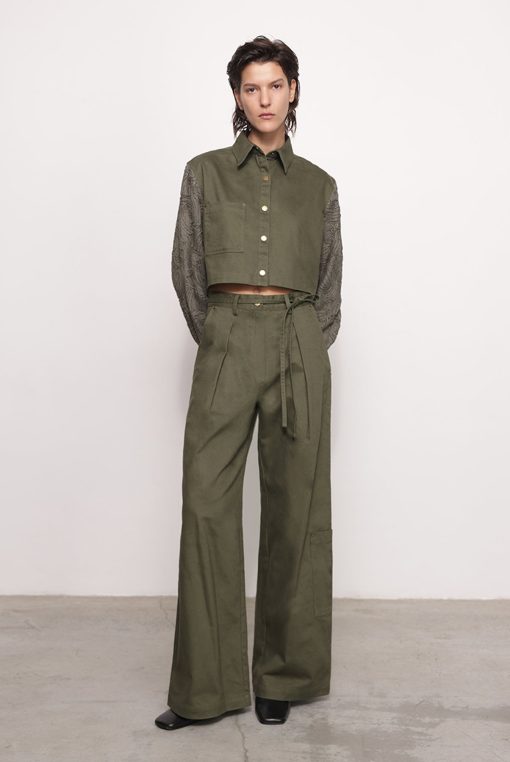 - Casual brushed denim with ribbon pants by Sabina Musayev.