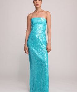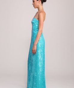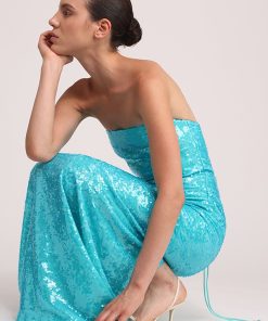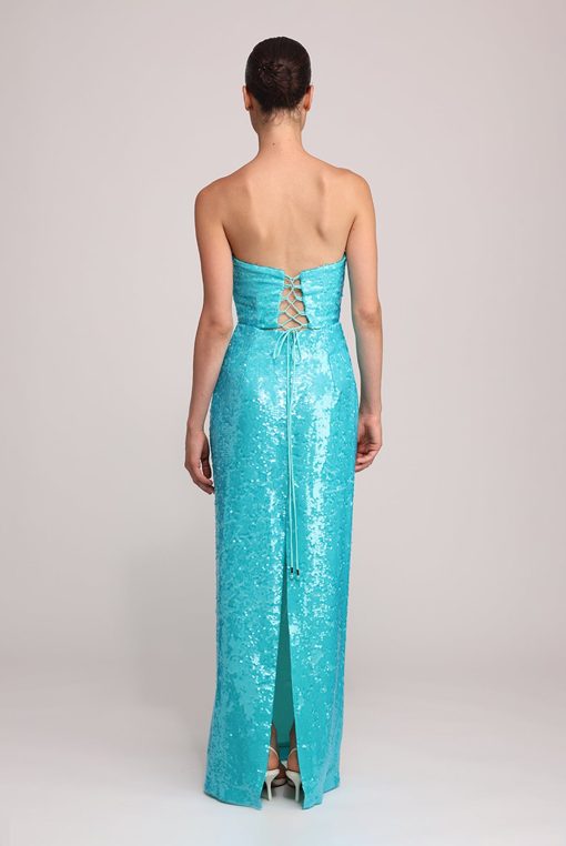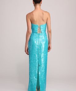 - Evening sequins on chiffon maxi strapless dress by Sabina Musayev.