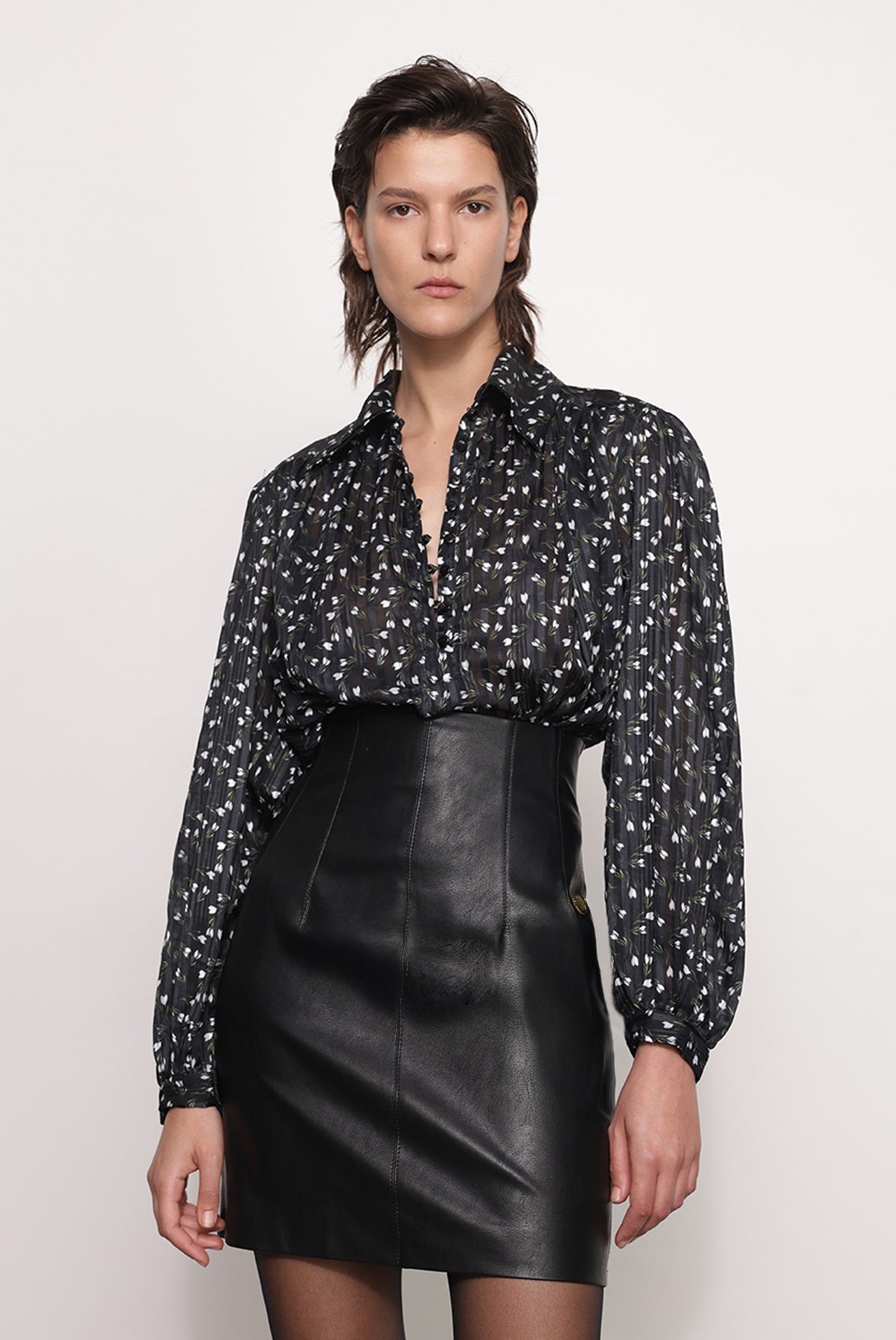 - Casual vegan leather pencil mini skirt by Sabina Musayev.