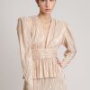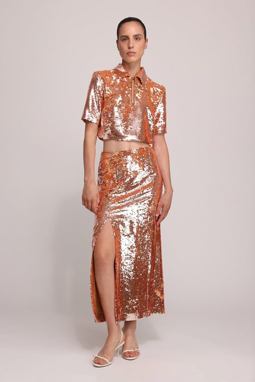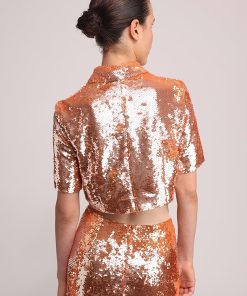 - Evening sequins on chiffon crop top with collar by Sabina Musayev.