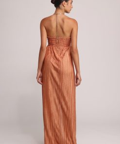 - Floral embossed pleated knit halter maxi dress by Sabina Musayev.