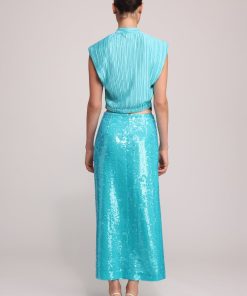 - Floral embossed pleated knit top by Sabina Musayev.