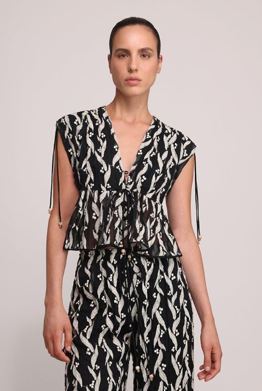 - Casual pleated chiffon with emb top by Sabina Musayev.