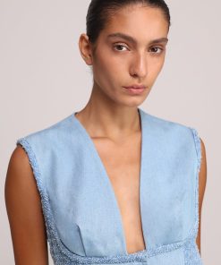- Casual denim mini dress with V – neckline by Sabina Musayev.
