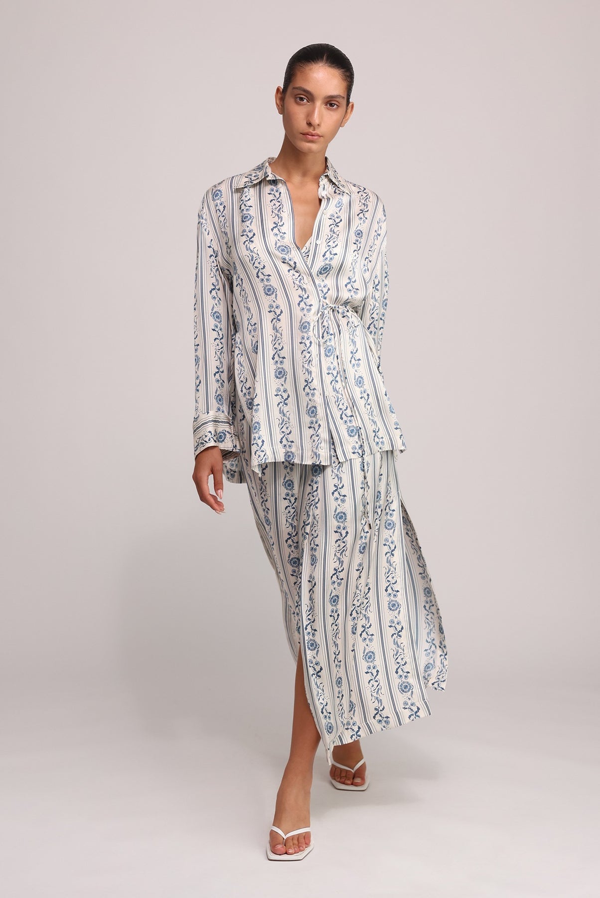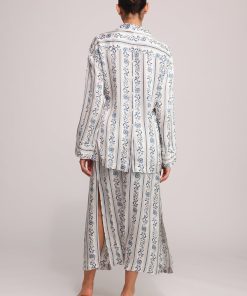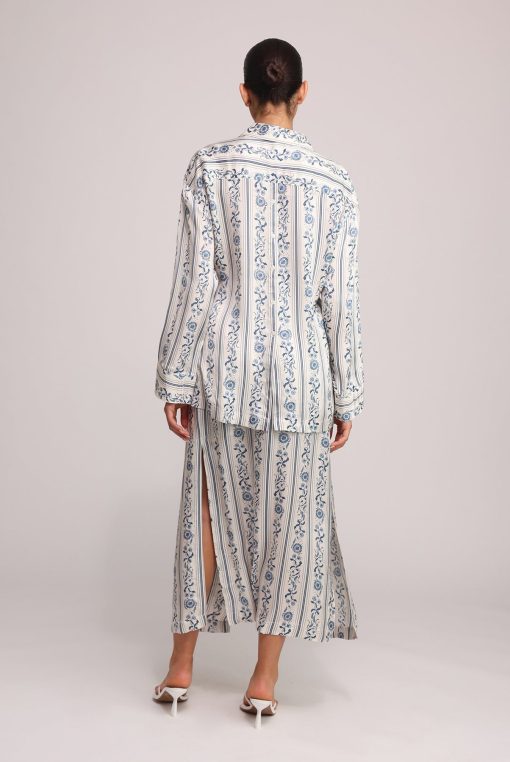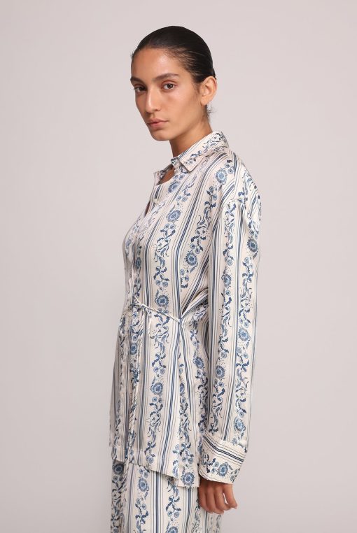 - Casual stripe print on satin collar top by Sabina Musayev.